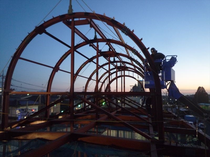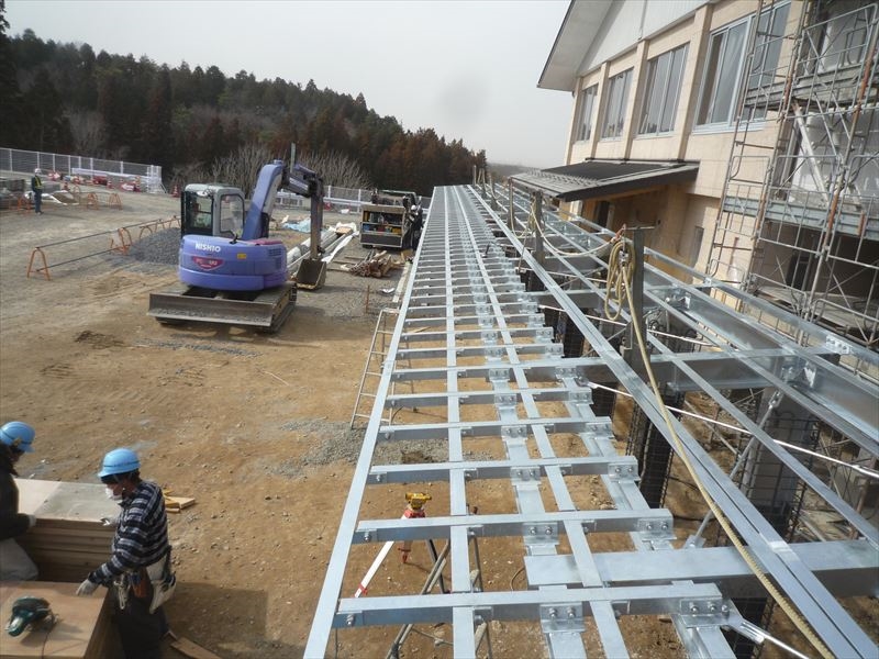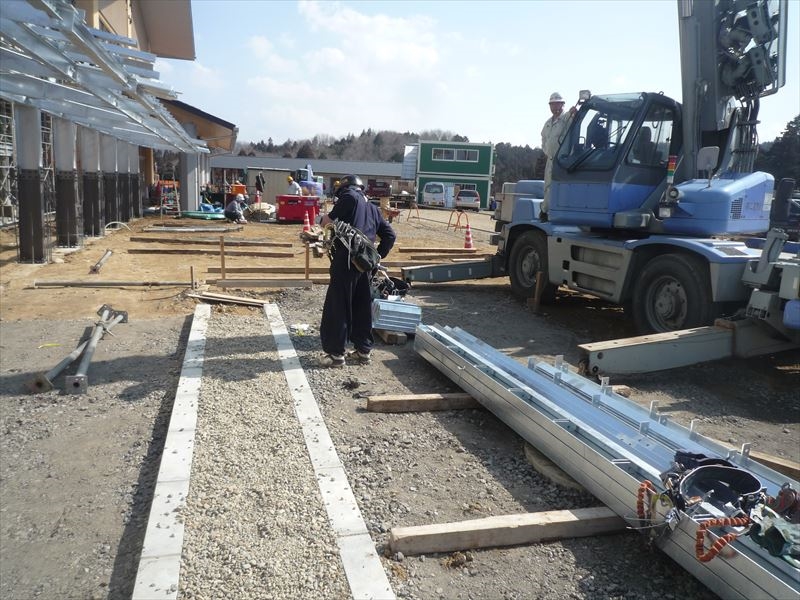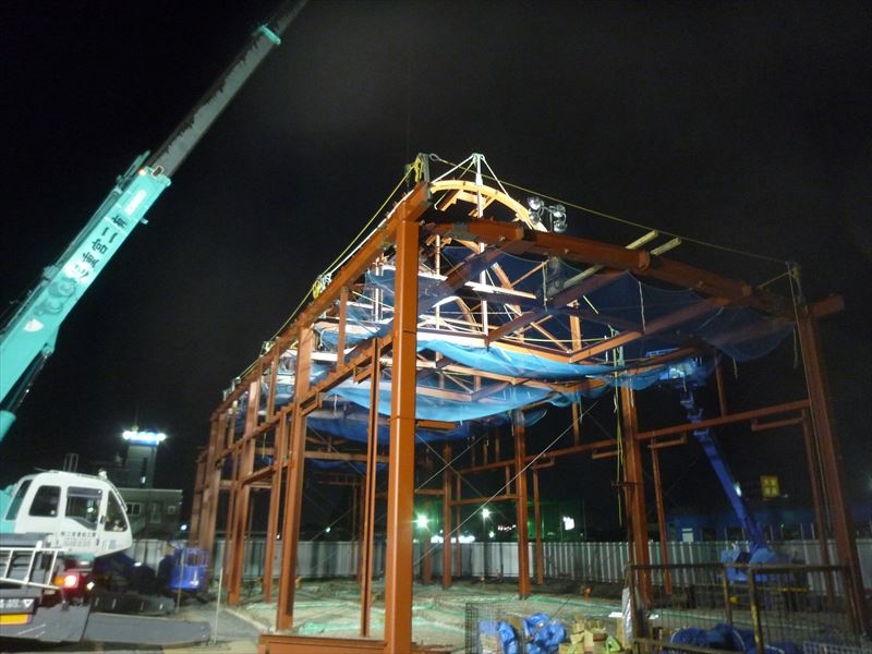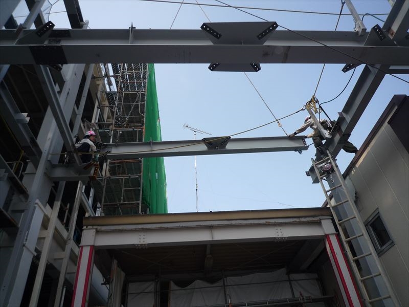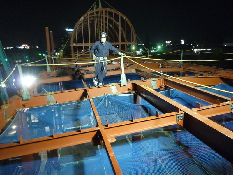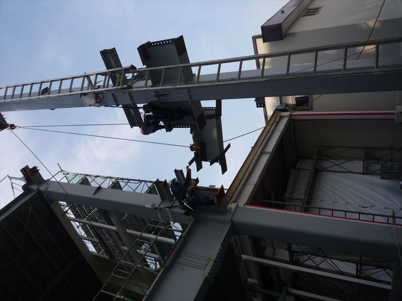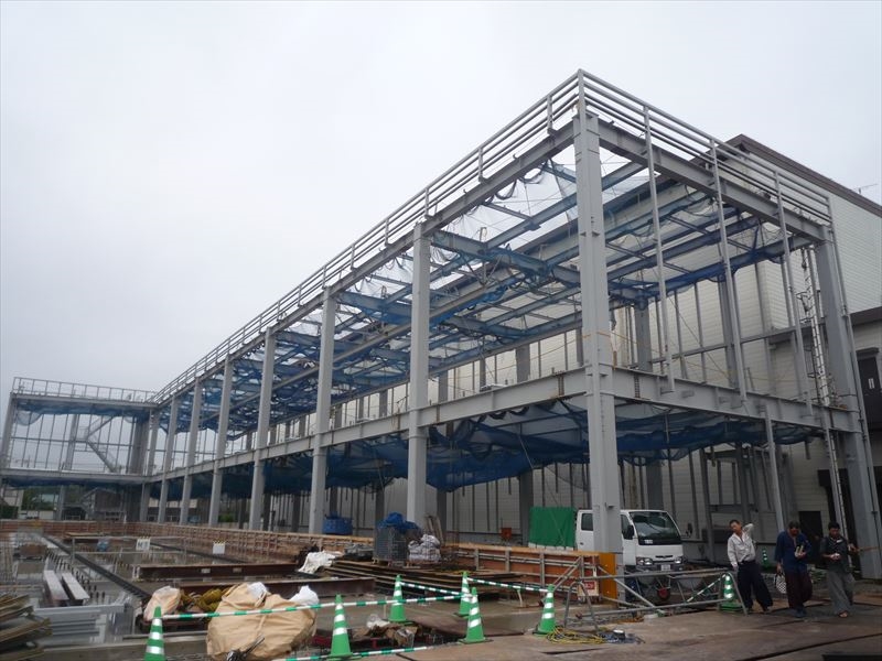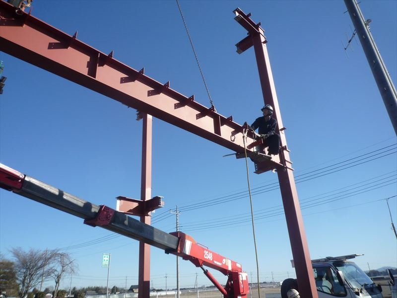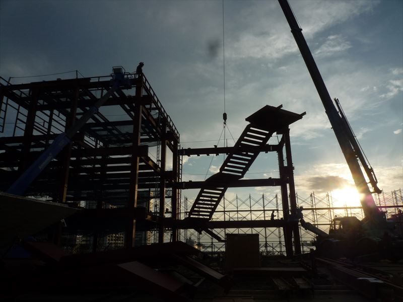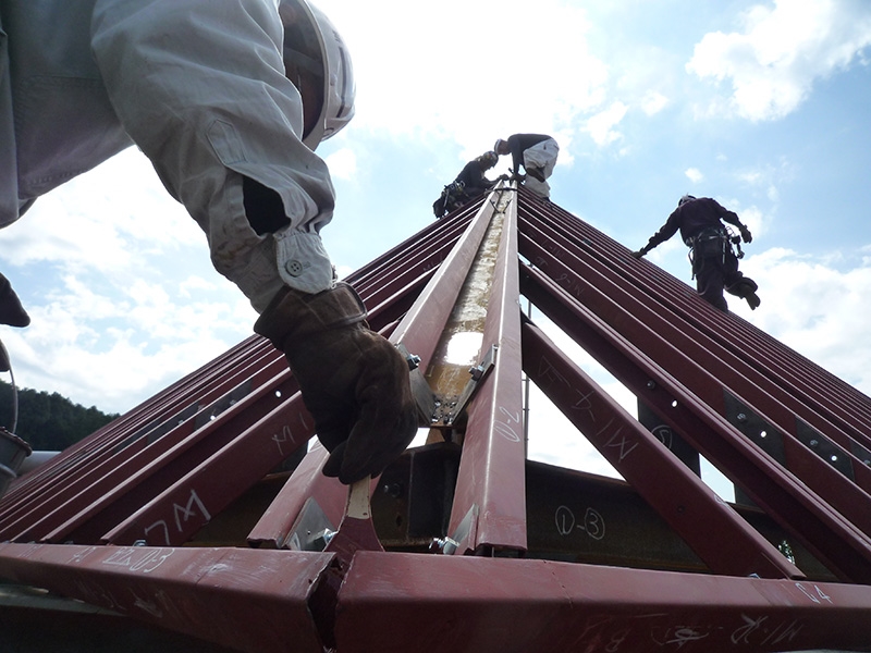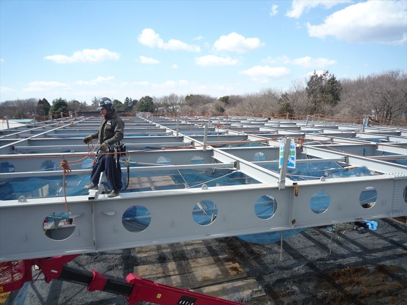 鉄骨建方は、建物の骨組みを作る上で基盤となり、とても重要な工事です。 当社では、公共工事、オフィスビル、倉庫、工場、店舗の重量鉄骨を中心に、床デッキ工事、母屋・胴縁工事、鉄骨階段など幅広く対応しています。